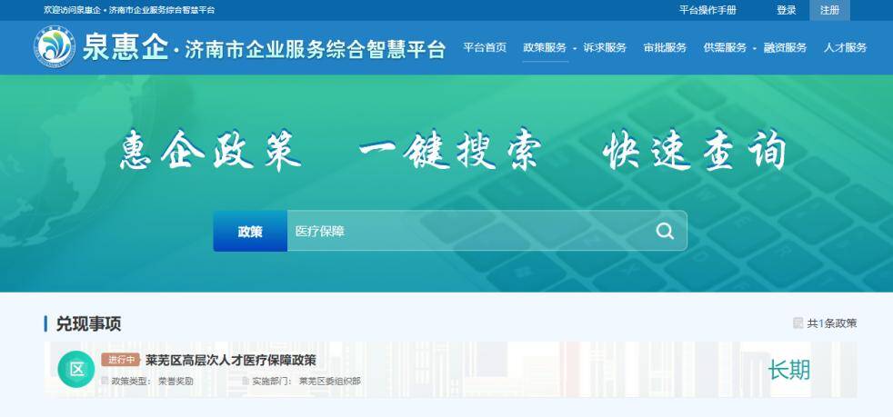 根据《济南市惠企政策“直达快享”改革工作实施方案》,莱芜区聚焦惠企政策高效兑现,构建了市区联动、部门协同的惠企政策服务体系,进一步强化了“泉惠企”平台政策服务统一出口作用,推进政策事项“应上尽上”“一口办理”。对全区惠企政策事项进行全量梳理和动态管理,目前已在“泉惠企”平台发布正在实施的兑现事项11条。根据资金兑付情况,确定高层次人才医疗保障政策、博士生活补贴、硕士研究生生活补贴3项事项作为首批兑现事项,在“泉惠企”平台进行网办流程配置,实现兑现事项全流程网上办理或链接申报,进一步提升政策服务的便利化,增强企业和群众的获得感。