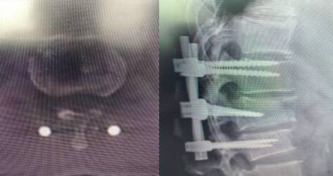 随后,明确相关指征后,李光胜紧急联系医务科,组织急诊科、胸外科、神经外科、重症医学科、手术麻醉科、输血科等科室进行多学科会诊,全面评估患者全身状况与手术风险,制定缜密的手术方案和应急预案,积极在输血输液抗休克的同时,进行术前准备,决定急症在全麻下行L1骨折切开复位内固定术+椎管减压术。