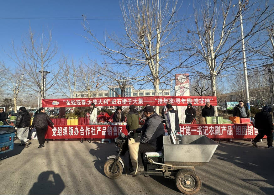 齐鲁网·闪电新闻1月21日讯 为切实发挥驻村第一书记帮扶作用,拓宽党组织领办合作社特色农产品销售渠道,1月20日,诸城市石桥子镇组织开展驻村第一书记和党组织领办合作社赶大集活动,甄选部分驻村第一书记和党组织领办合作社的优质特色农产品,现场摆摊售卖,吸引到了前来买年货的群众。