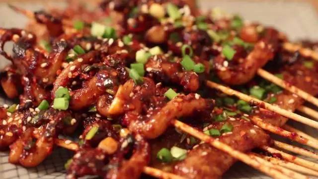 鱿鱼、洋葱、辣椒面、孜然、白芝麻、葱、海鲜酱5勺、蚝油1勺、甜面酱半勺、蒜蓉酱半勺、白砂糖半勺、白醋半勺、蒜