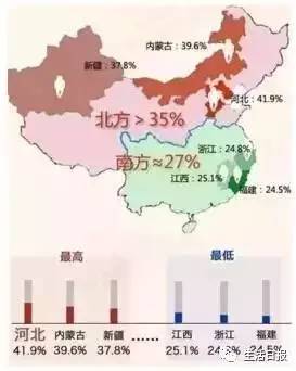北方的平均超重率达到35%,
