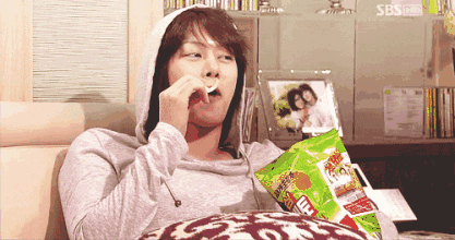 期间不停地吃薯片、坚果,