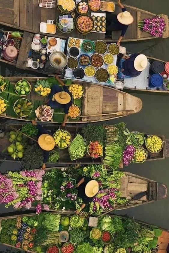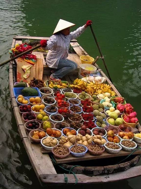 和同为东南亚国家的泰国一样,越南也盛产各种蔬菜和水果,每天早晨,清澈的河面上,总会有清新热闹的早市。
