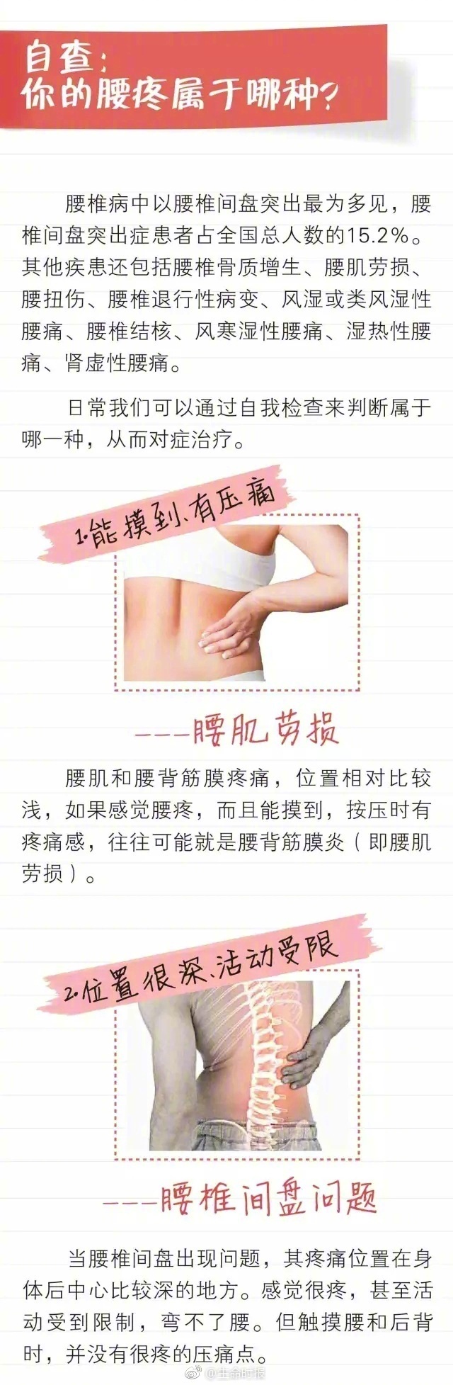俗话说,“十人九腰痛”。腰痛是种常见病,常常迁延不愈。近年来,腰椎病呈年轻化趋势,不少年轻人腰部未老先衰。据统计,我国腰椎病患者已突破2亿人,发病率仅次于感冒。接下来,就跟随小编一起来自查你的腰疼属于哪种?