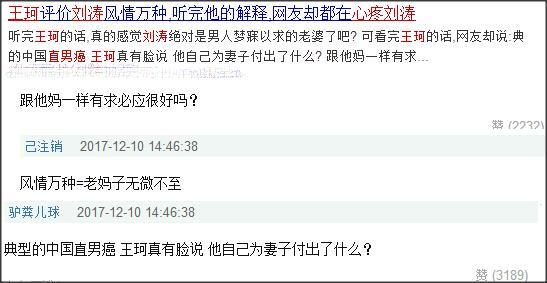 王珂这段对刘涛的评价引发网友热议。有不少网友评论称很反感他的“直男癌”:对媳妇呼来唤去的,所谓的“风情万种”就是像妈一样无微不至地照顾自己?