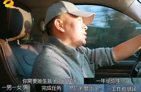 “你需要她生孩子的时候,一年给你生一个,一男一女,俩,完成任务。然后到复出了,一工作也挺好”。