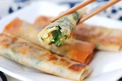 ●而后把它包入春卷皮内,放入油锅里用文火炸至金黄色,即可食用。