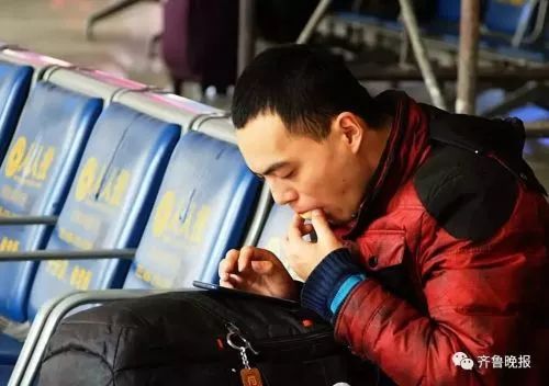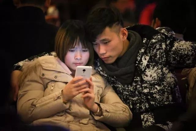 【手机】2017年1月18日,北京火车站,一对情侣相互依偎,看着手机。2017年春运较2016年提前11天,是5年来最早的春运,将从1月13日持续至2月21日,其中节前15天,节后25天.Huha /摄