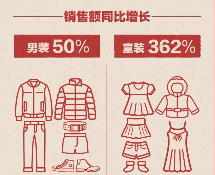 谁说买衣服是女孩儿们的特权?2018年男同胞的新装也没少买啊,当然,还是宝宝们的衣服的销售额增长占了上风。