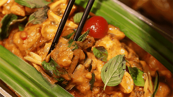 4.小火慢煨,至水差不多收干为止,起锅装盘,撒小香葱和红椒装饰即可。