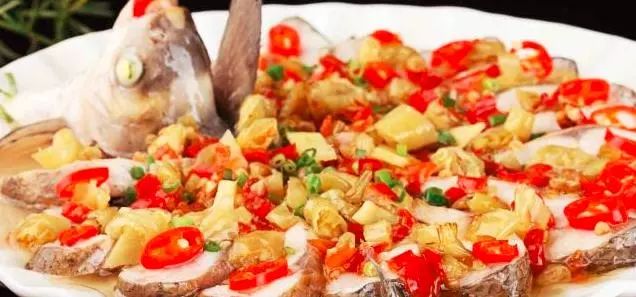 草鱼,食盐、料酒、食粉、青红辣椒碎、番茄酱、味精。