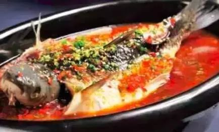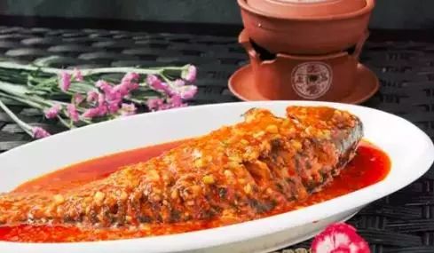 3、起锅将油烧至五成热,下入青红辣椒碎50克、番茄酱20克、盐3克、味精2克熬成汤汁,浇在草鱼上即可,上面撒葱花20克。