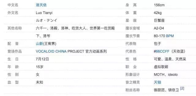 洛天依是一个虚拟偶像,身高156厘米,性格温柔内向、细腻敏感的15岁女同学,特征为灰发、绿瞳,发饰碧玉、腰坠中国结,准确地说,其本体是一个“会唱歌的程序”。但她有粉丝、代表作、广告代言,最近还开了演唱会,她甚至和娱乐圈小鲜肉、小花一样绯闻缠身。洛天依与真人偶像唯一的区别大概是,她不会因为绯闻头大。