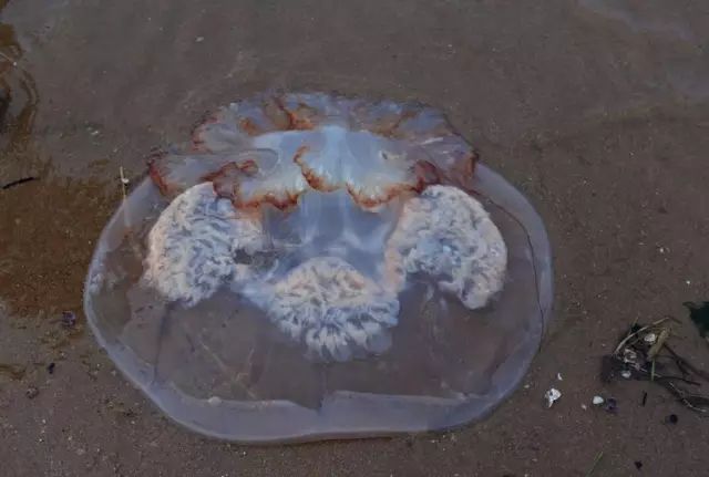 注意:千万不要抓捕、触碰海水中漂着的海蜇。一旦被海蜇蜇伤,不要用淡水冲洗,因淡水可促使刺胞释放毒液,应尽快用毛巾、衣服、泥沙擦去黏附在皮肤上的触手或毒液,可用碳酸氢钠(小苏打)或明矾清洗伤处。若损伤面积大,全身反应严重者,要及时去医院治疗。