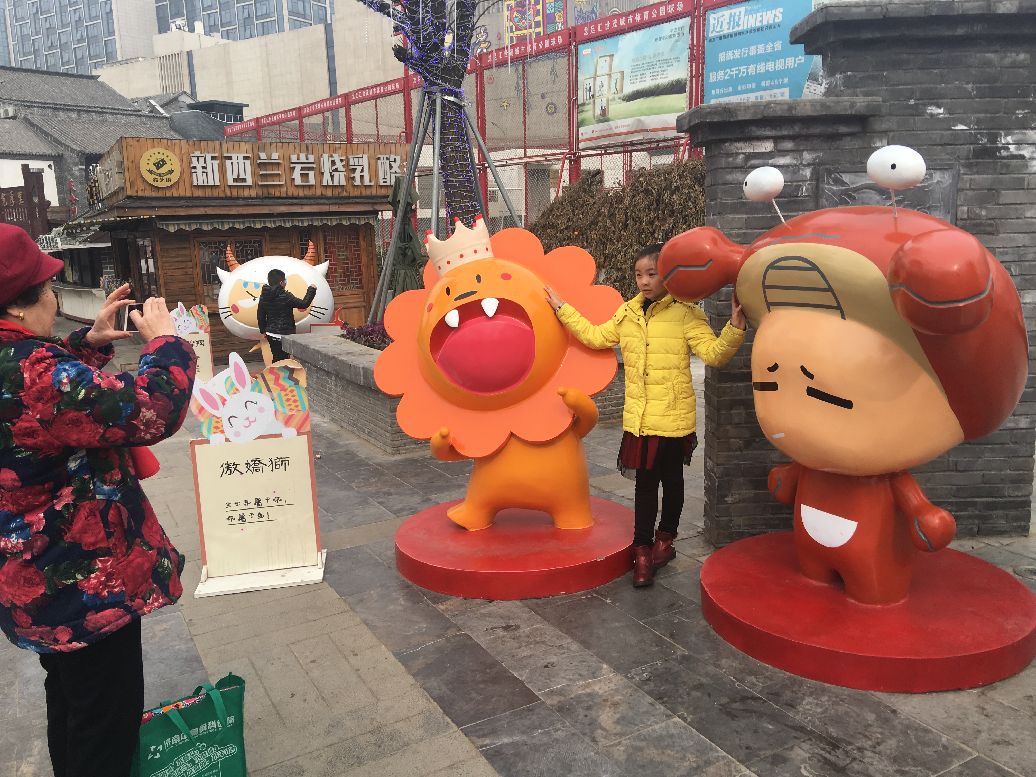 27日上午10点,记者来到宽厚里黑虎泉北路的入口,映入眼帘的就是一块高耸的牌坊,牌坊下的地面雕出了老济南商埠的格局,让人恍然踏过了几百年的历史。牌坊两侧是十二星座娃娃,一个个俏皮可爱的娃娃又给宽厚里增添了几分时尚气息。虽然春节假期已过,也尚未到周末,但街区内依然人潮攒动,五六岁的小姑娘仰头看着比自己高的肉串摊,漂亮的女孩白裙飘飘走街串巷拍着写真…… 一切都是美好的样子。