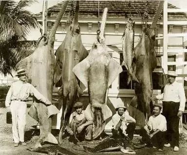 最能让锯鳐逍遥威武的当属它的长吻,也就是我们说的“锯子”,当然,这也吸引了人类的目光。过去,印第安人用锯齿做成切割器;菲律宾人、新几内亚人、新西兰人把整个“锯子”当成兵器;秘鲁人在斗鸡时,把锯齿装在鸡脚上,增加杀伤力;中国人则用它来做迷信活动——辟邪。
