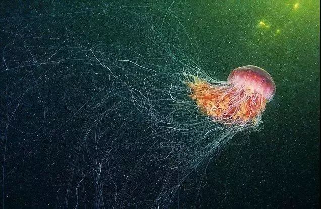 可别小瞧水母!狮鬃水母是世界上最大的水母类动物,有150多条逆天长的触手,用于捕获食物以及防御天敌。