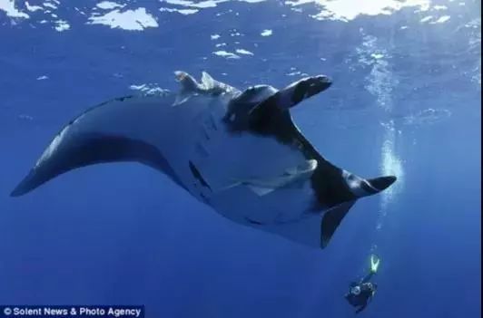双吻前口蝠鲼,又名巨型魔鬼鱼,在各大洋热带,亚热带,温带海域都有分布,是世界上最大的下孔鱼类,翼展可达7米,体重可达两吨。