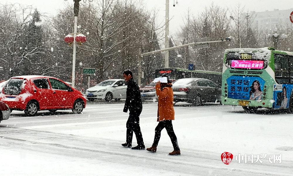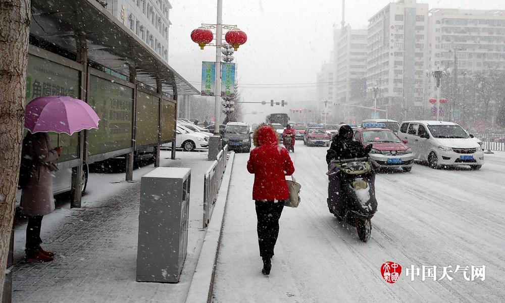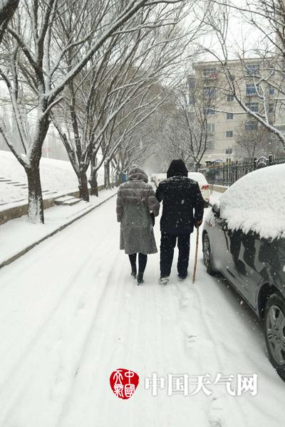 7日10时30分,朝阳市区道路积雪明显加深,市民出行受到影响。(图/文 李书君 刘丹丹)