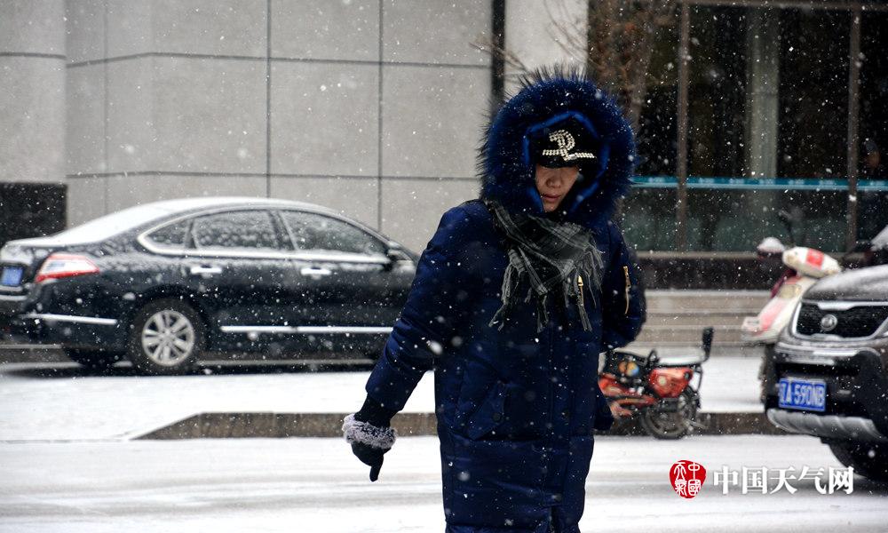7日9时30分,朝阳市区风雪交加,给市民出行带来困扰。(图/文 罗思维 马东雷)