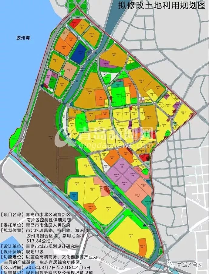 同日,青岛市规划局还发布了青岛市市北区滨海新区南片区及北片区控制性详细规划修改公示。