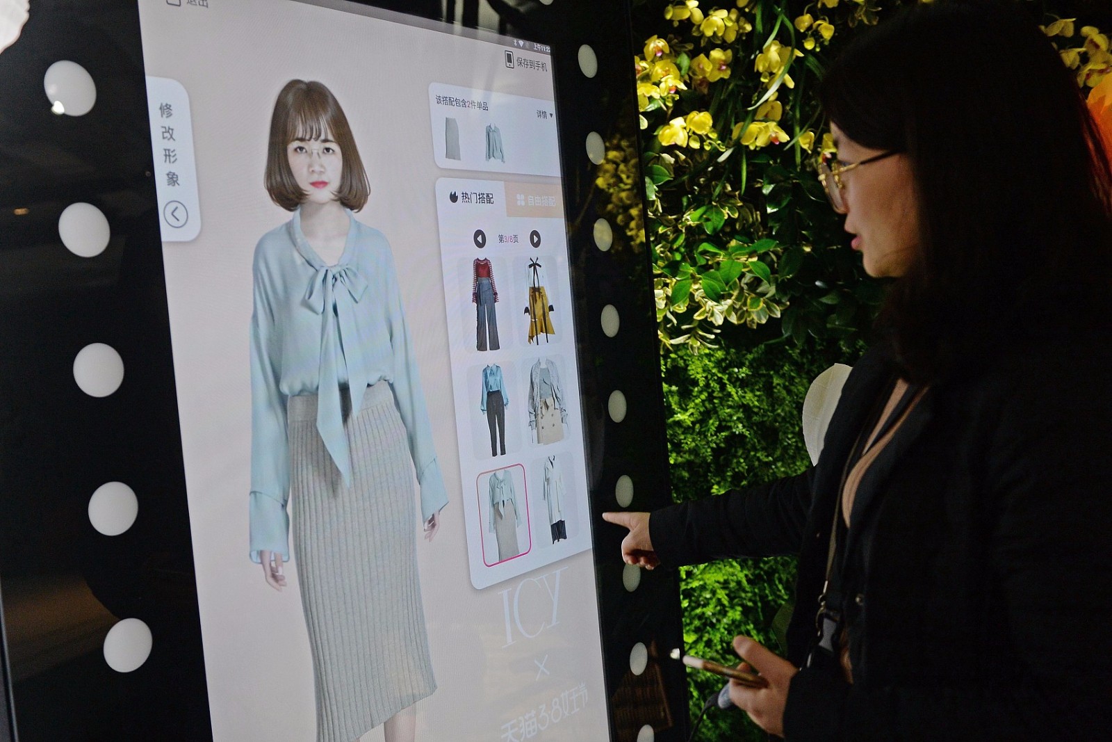 试穿满意后,若现场没有款式和尺码,消费者还可以通过手机直接网购。这种高科技的运用给消费者带去了不同凡响的购物体验。