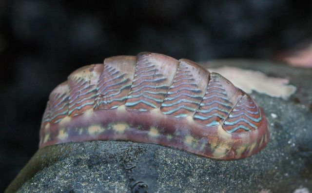 石鳖属于多板纲中原始类型的贝类,它们的颜色和岩石一样,形状有点像陆地上的潮虫。通常呈卵圆形,扁平,两侧对称。