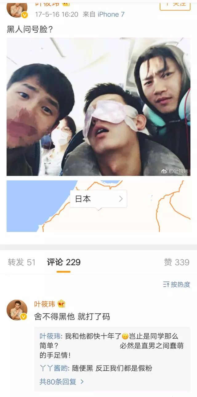 虽然作为刘昊然最好的朋友,叶筱玮在公众面前几乎很少提起两人同学的这层关系,微博里也仅有一张和刘昊然的合照,因为刘昊然睡意朦朦胡子也没刮,好兄弟还贴心得打上了码,十分贴心了。