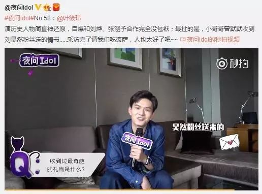 还有一次接受采访时在快问快答的一个环节,叶筱玮被问到收到最奇怪的礼物是什么时,竟然是刘昊然粉丝送的情书,这个礼物也是相当别致了。