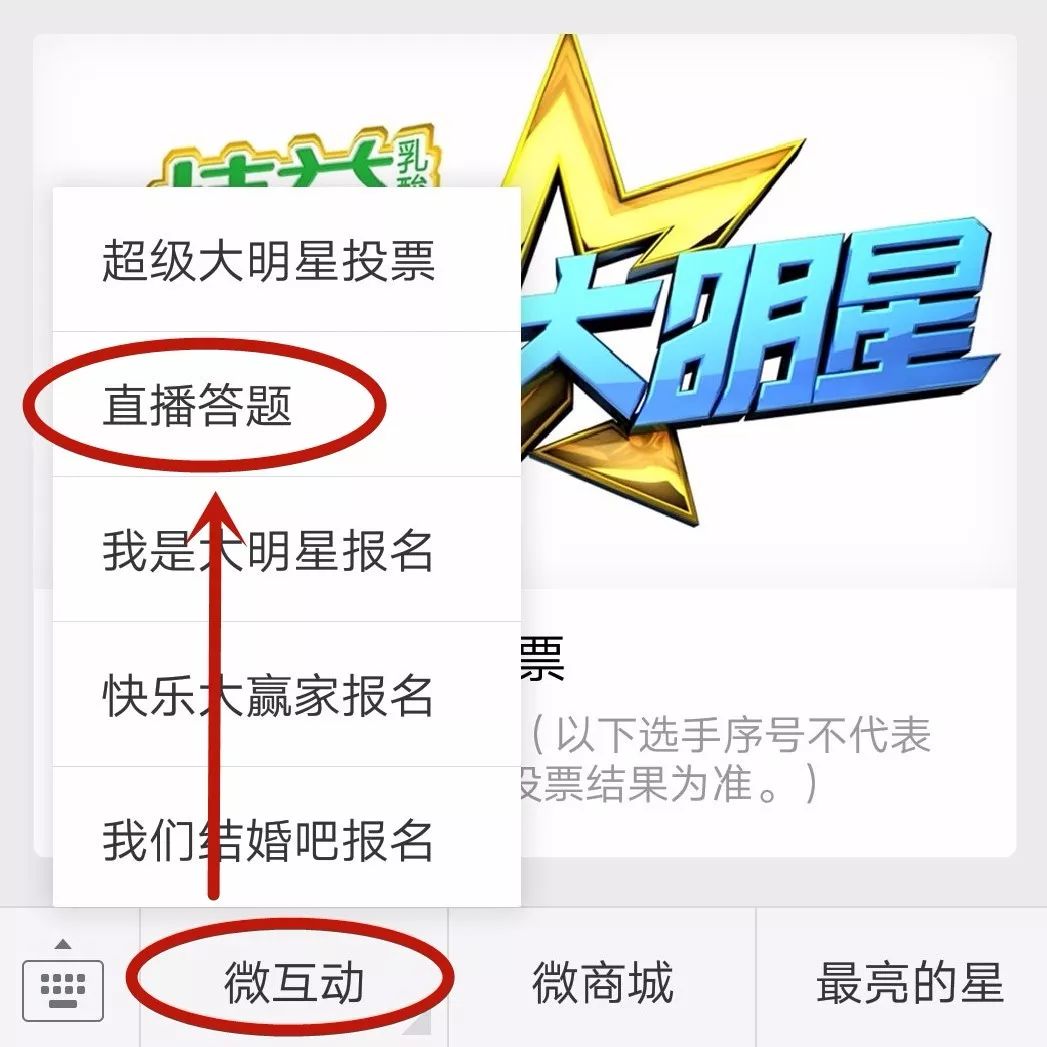(关注微信——菜单——微互动——直播答题)