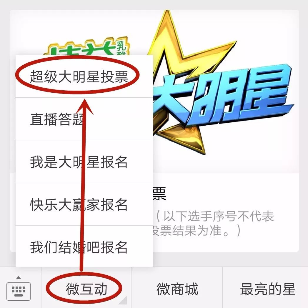 (关注微信——菜单——微互动——超级大明星投票)