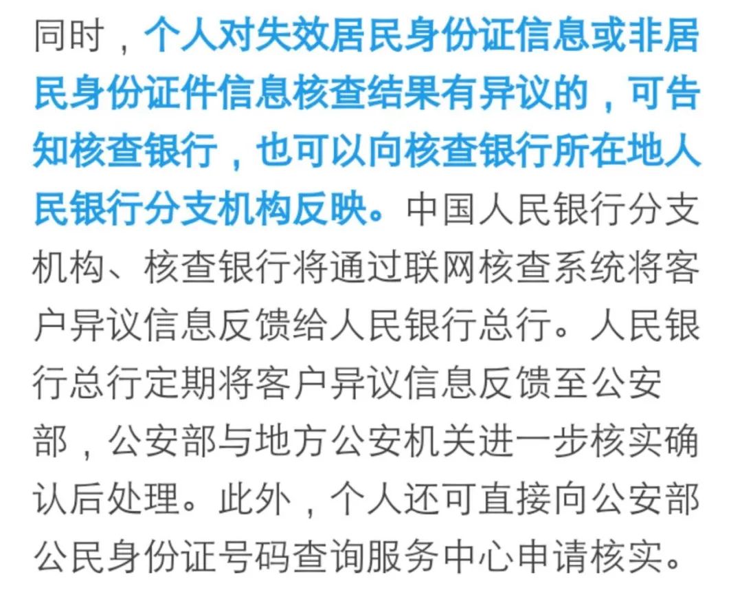 而且,只有当输入的姓名和身份证号联网匹配一致的时候,银行才进行身份证信息核查,各种不一致的,比如系统反馈为号码不存在、号码存在但和姓名不匹配等等,银行也不会对你进行失效身份证信息核查。