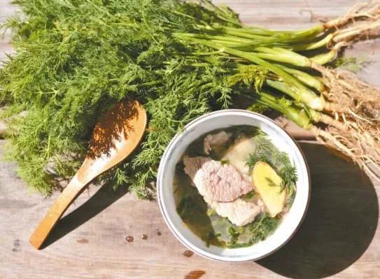 【简单做法】先腌一下猪肉,姜片汤煮开,下猪肉、米酒,趁肉片还没煮老之前,下茴香段煮一两分钟,可以吃了。