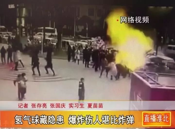 今年2月24日下午,武汉街头,小贩手中的氢气球突然爆炸,火苗足足窜出三四米高,造成一名年轻男子和一名两岁小女孩受伤。