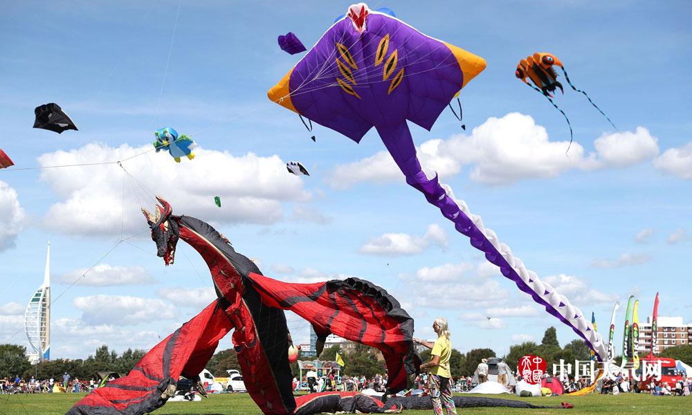 春景正盛,清风徐来,随着气温的逐渐升高,此时正是放风筝的大好时机。小编搜集全球各地的奇葩造型风筝,看看你见过几个?图为当地时间2017年8月13日,英国朴茨茅斯,当地举办风筝节,各式种类的风筝在天空中放飞。(来源:视觉中国 未经授权 请勿转载)