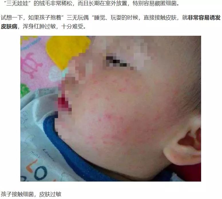 有业内人士透露:很多玩具为了防皱,商家会在原料里加入染色助剂,而染色助剂中添加的甲醛含量超标后,长期亲近玩具,嘴鼻近距离吸入,不仅会让人头痛过敏,严重的还会出现致命状况。