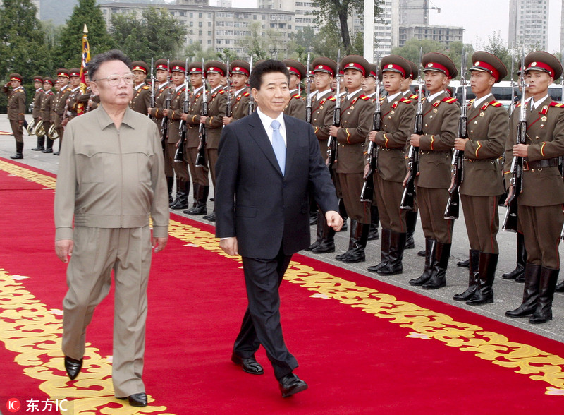 2007年10月,朝鲜平壤,时任韩国总统卢武铉和朝鲜领导人金正日会晤。图为朝鲜举行欢迎仪式。
