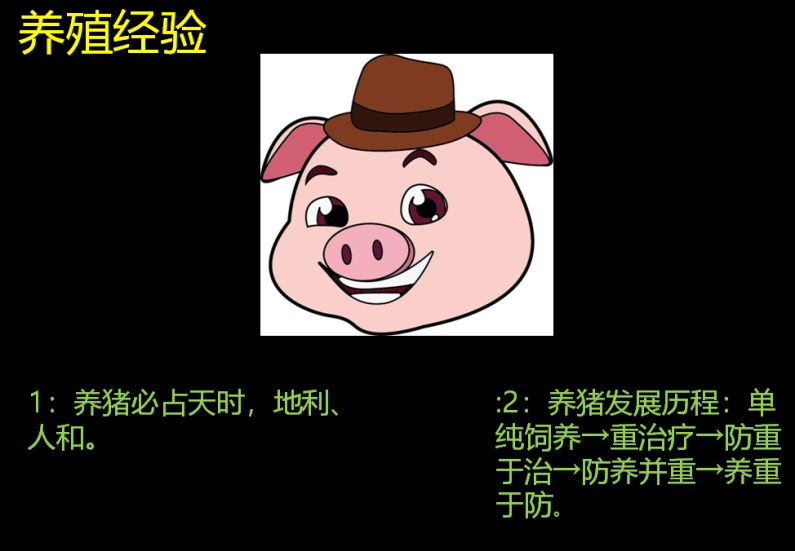 孔子说人要有“三知”,知命,知礼,知言。如今的养猪业中要想成为一名优秀的专(lao)业(si)人(yang)士(yuan),那就还要再多一知,就是“知猪”。所谓知者,晓得、明了、学问也,这其中还有“掌管”的含义,比如知府,知县,知州……知猪人。