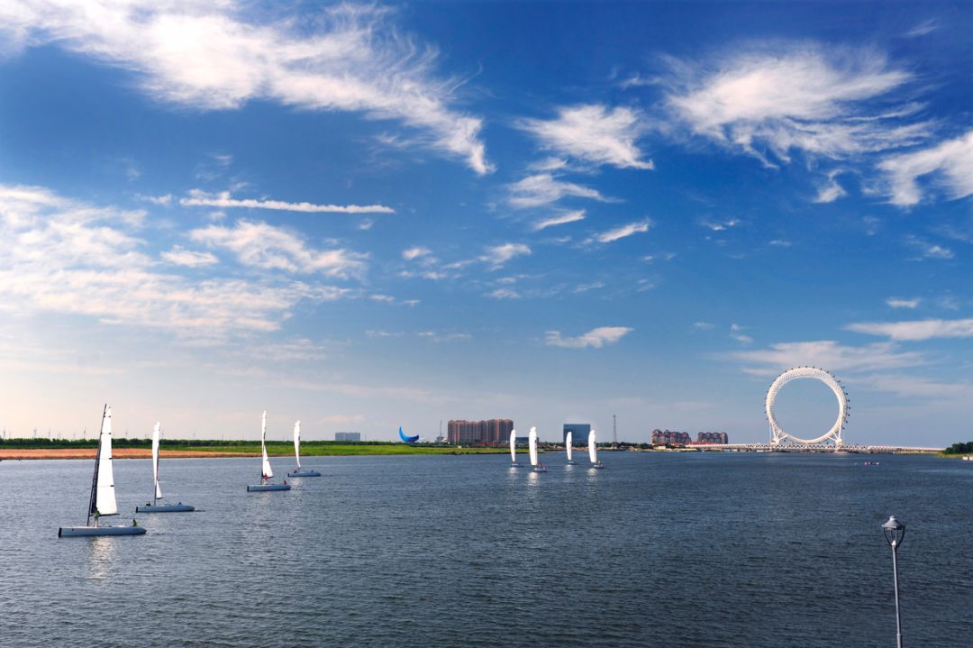 乘上“渤海之眼”,近观可俯视波涛翻滚的白浪河,远眺可观赏烟波浩淼的渤海湾,随着摩天轮来到最高处,极目四顾,海天相连,仿佛身处梦的云端……