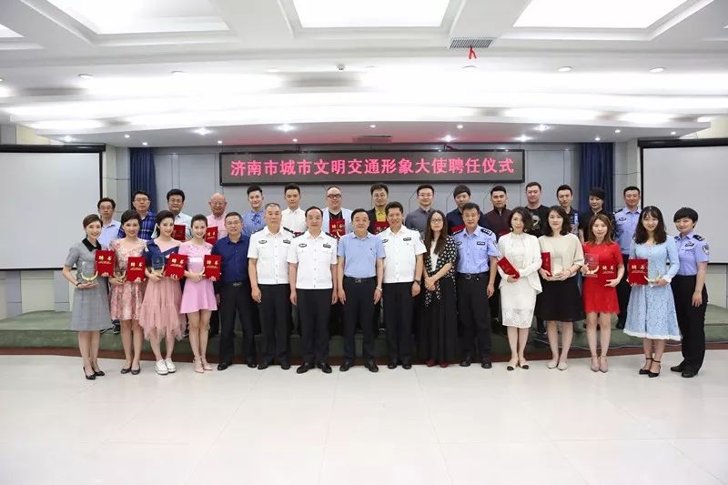 来自济南广播电视台的20位著名主持人,正式被聘任为“城市文明交通形象大使”,交警支队曹凤阳支队长和段富勇政委为他们颁发证书和水晶杯。道路交通安全,需要我们的共同参与;发挥榜样的力量,共同打造“有温度的城市”。