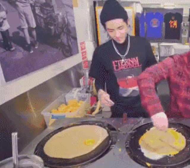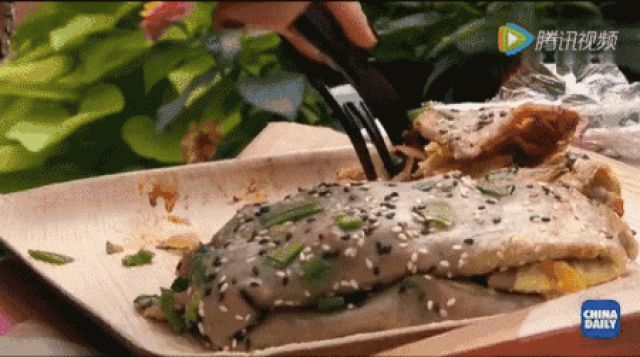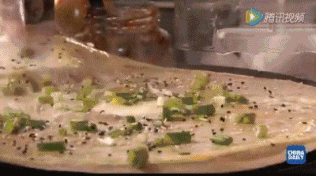 更绝的是煎饼走出国门后,中西合璧,越发具有异域风情……