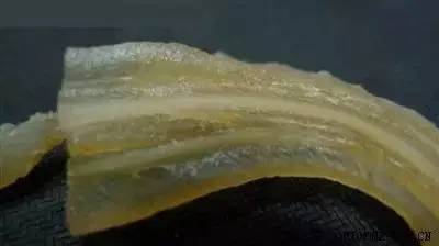 只要有猪皮的地方,肯定有毛孔。一般情况下,经过加工、卤熟的猪耳朵表面多多少少会残留少许细小的猪毛,而且表皮也不可能这么光滑。真猪耳朵有肌肉层、瘦肉,有正常的肌理组织且纹理相当清楚,还有明显的脂肪颗粒、毛细血管,毕竟曾经是活生生的猪。人造的怎么也不可能这么细致!