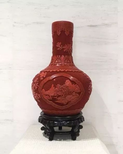 三件纯雕漆工艺作品——《山水蒜头瓶》《双色牡丹瓶》《花开富贵瓶》,被摆放在上合组织青岛峰会主会场一楼迎宾大厅,十分显眼。