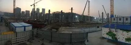 8台汽车吊顺势排开,构件就近卸车,流水吊装,每隔30米安排一名管理人员,通过对讲机沟通疏导。凌晨2点,完成卸载;凌晨6点,首批钢柱装配完成;第二天上午9点,首层198根钢柱全部安装结束。
