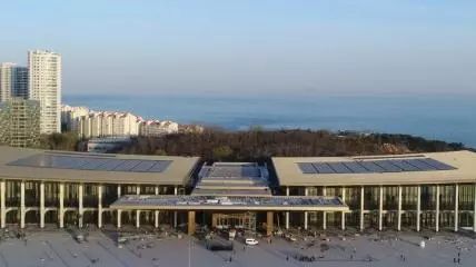 主会场的金属屋面上铺设有4400平米、相当于10个标准篮球场大小的光伏太阳能,项目总工郁勇介绍说:“屋面太阳能光伏板通过铝合金夹具、不锈钢U型材、铝合金檩条固定在铝镁锰防水板上”。太阳能与UPS不间断电源配合使用,保证即便停电,大部分会议场所及其他设施正常运转,确保会议继续召开。
