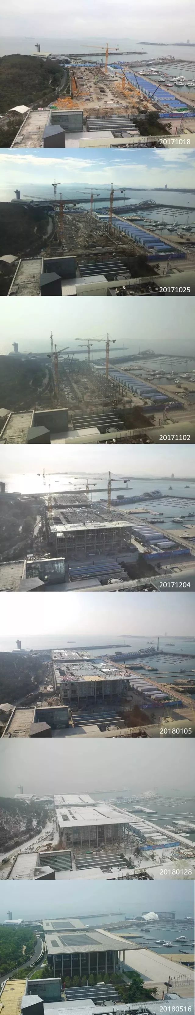 远远望去,工程犹如一只舒展两翼的海鸥,从空中鸟瞰,山、城、海、港、堤融为一体,交相辉映。
