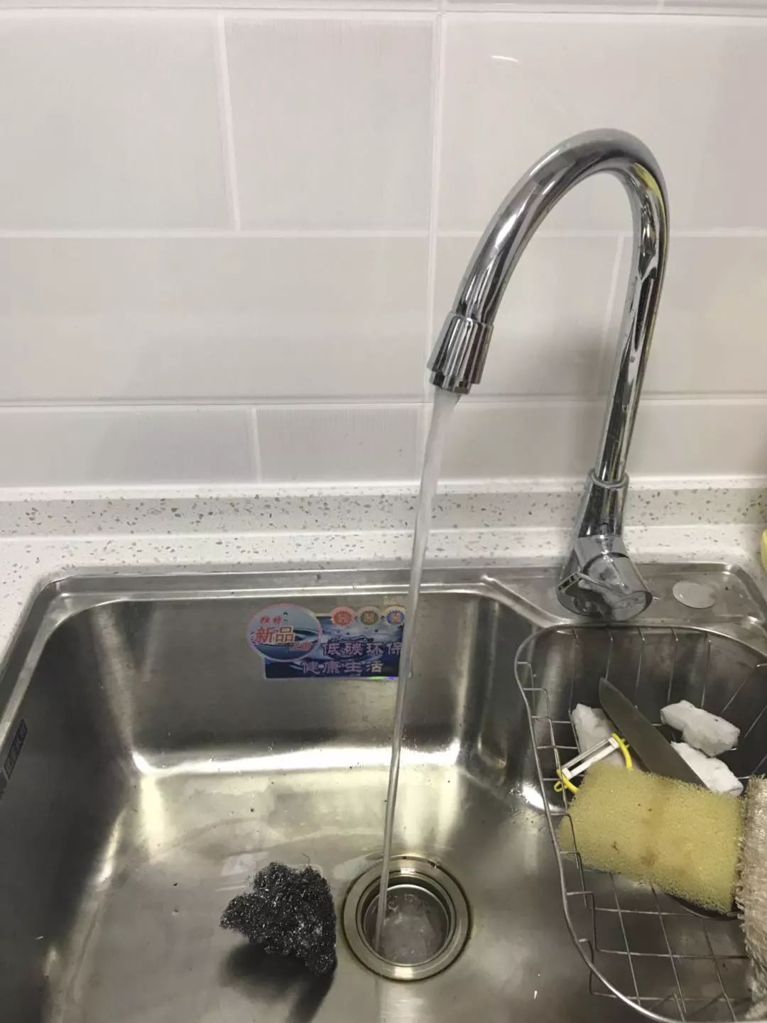 昨天下午三点,记者来到海尔云地产云世界一期二号楼安女士家,把龙头开到最大,水流是这种表现: