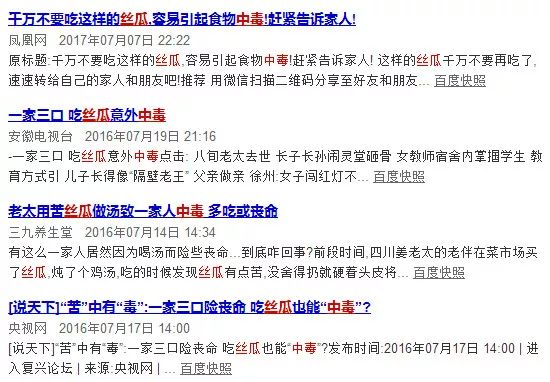 有很多文献研究,都曾报道过吃苦丝瓜、苦瓠子而中毒的案例。
