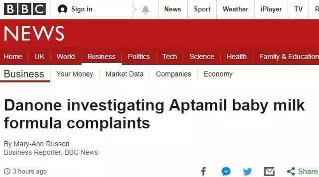 英国BBC报道称,爱他美最近改变了奶粉配方,而英国数百上千的家长在社交媒体上投诉新配方的奶粉让他们的宝宝生病。