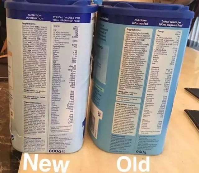 网友Keira Mc Dowell:左边是旧的配方,右边是新的配方,难怪我3周岁的宝宝一直在生病。每次他看到奶瓶就都把头侧到一边。↓↓↓
